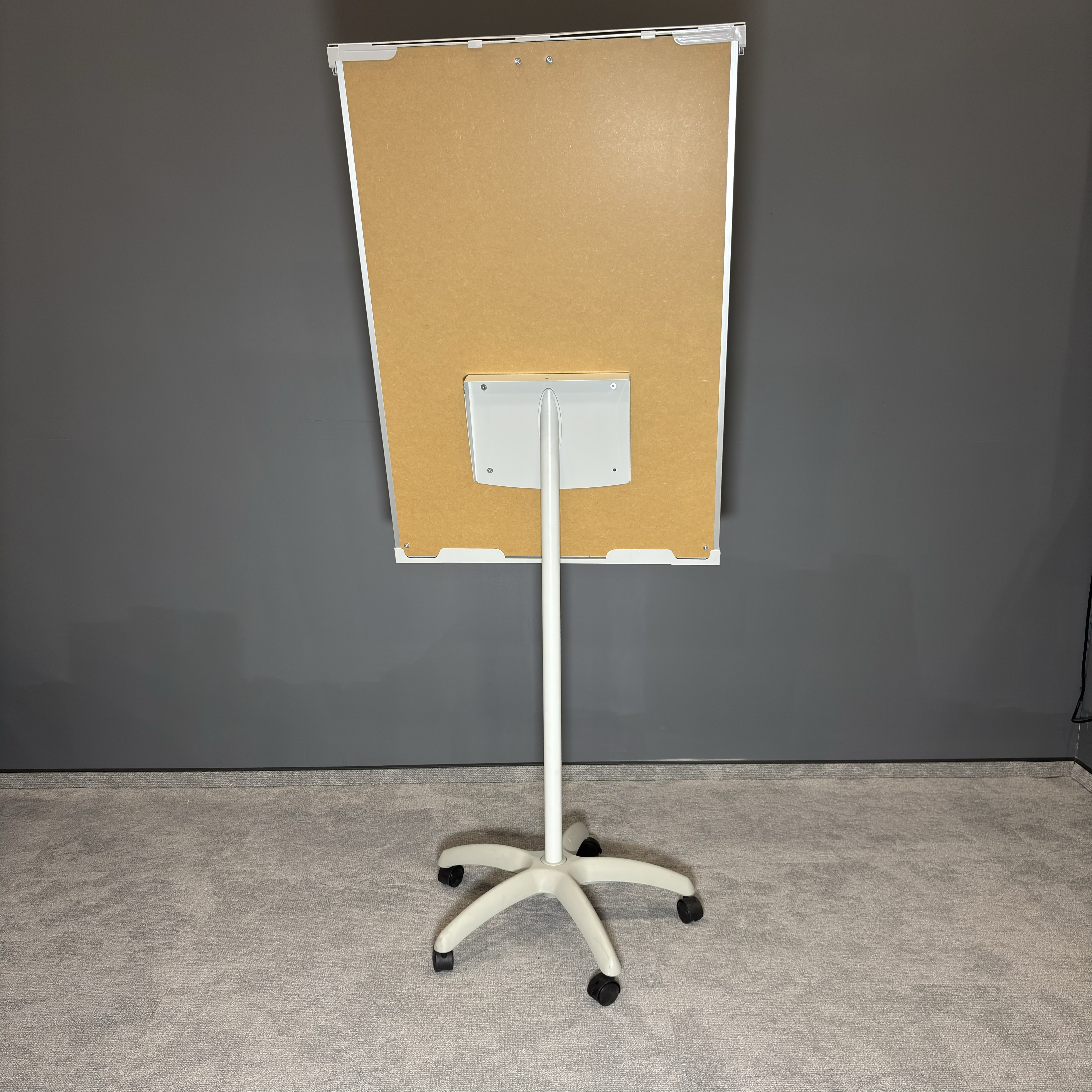 Prosta, funkcjonalna forma oraz neutralna kolorystyka sprawiają, że flipchart dobrze wpisuje się w różne aranżacje biurowe i edukacyjne.