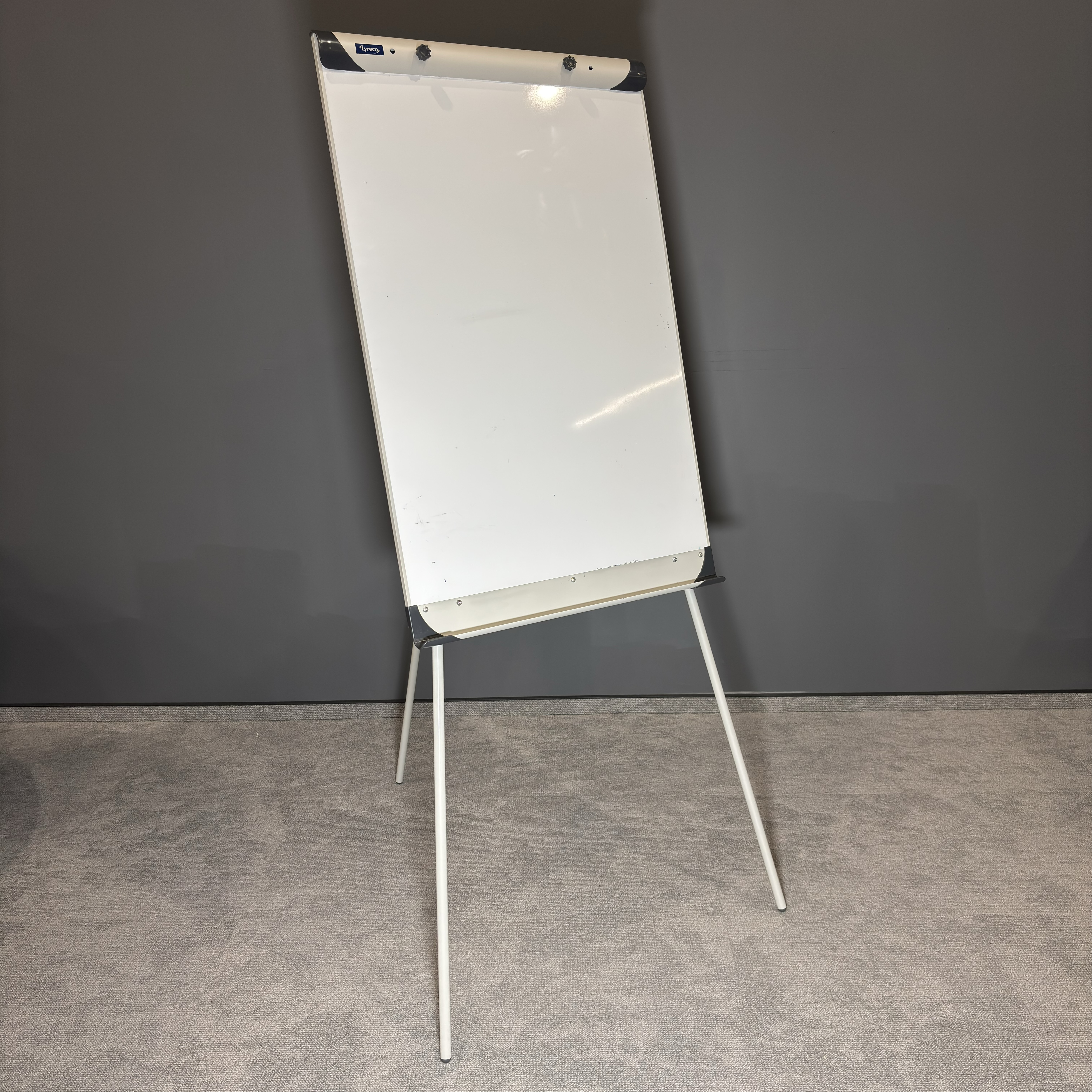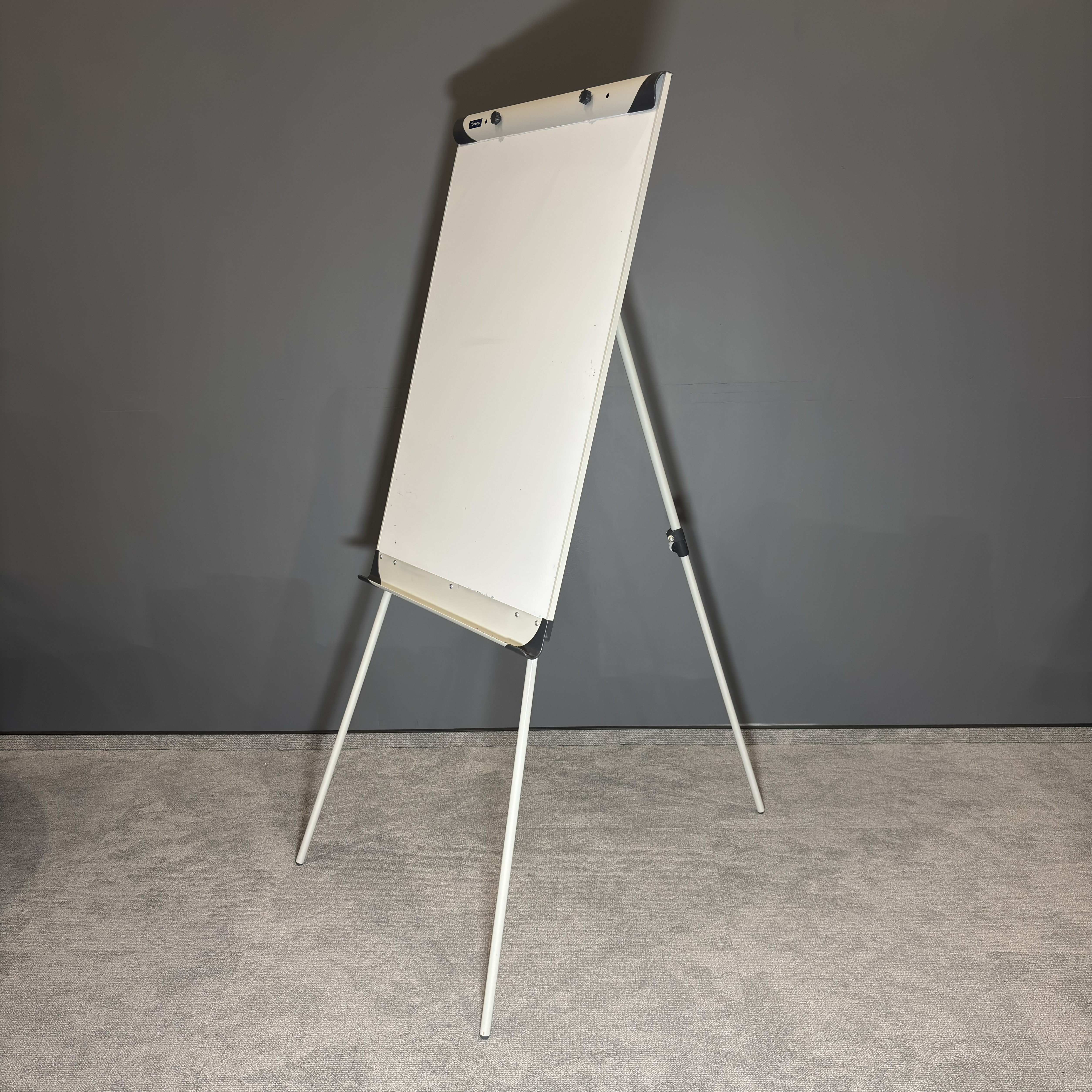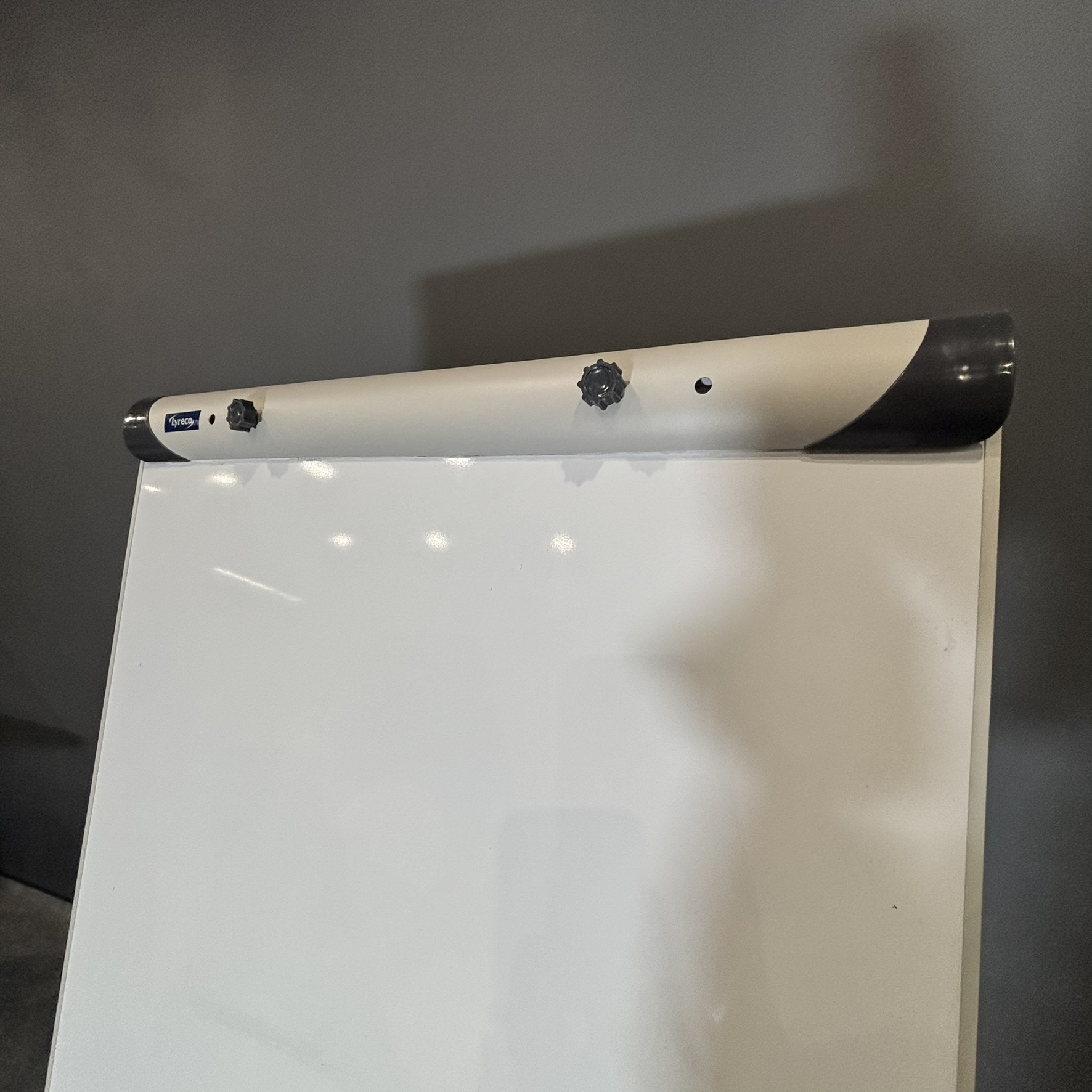 Flipchart w stanie używanym – w pełni funkcjonalny, z normalnymi śladami użytkowania. Powierzchnia robocza gotowa do dalszego użytkowania.