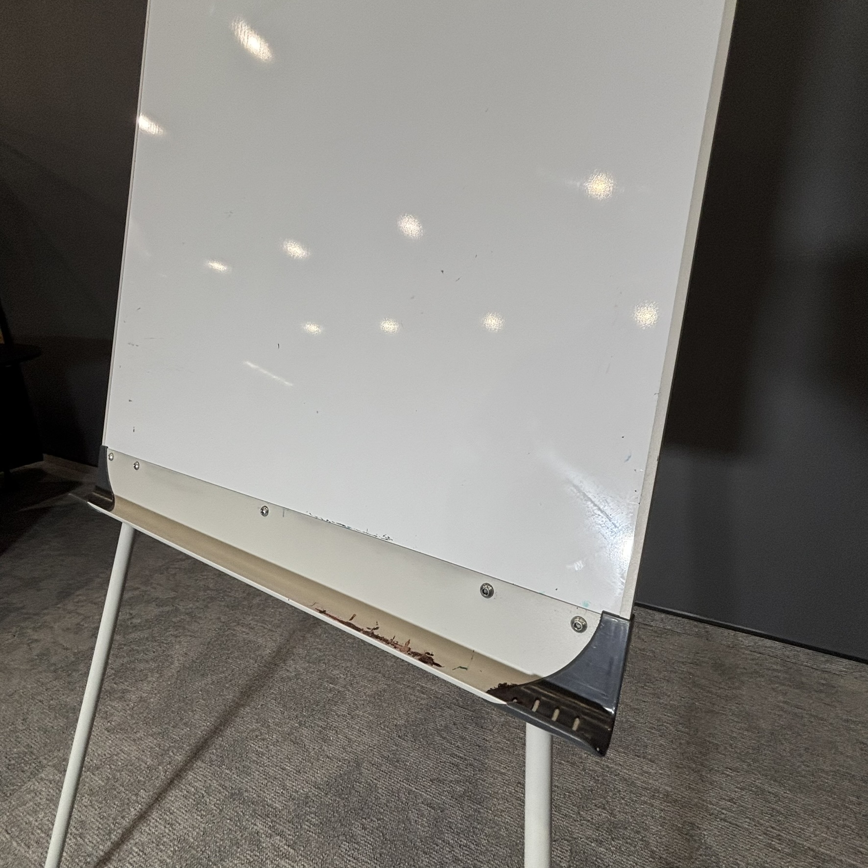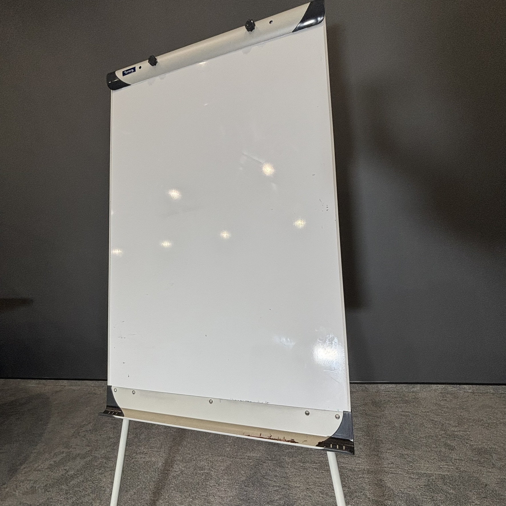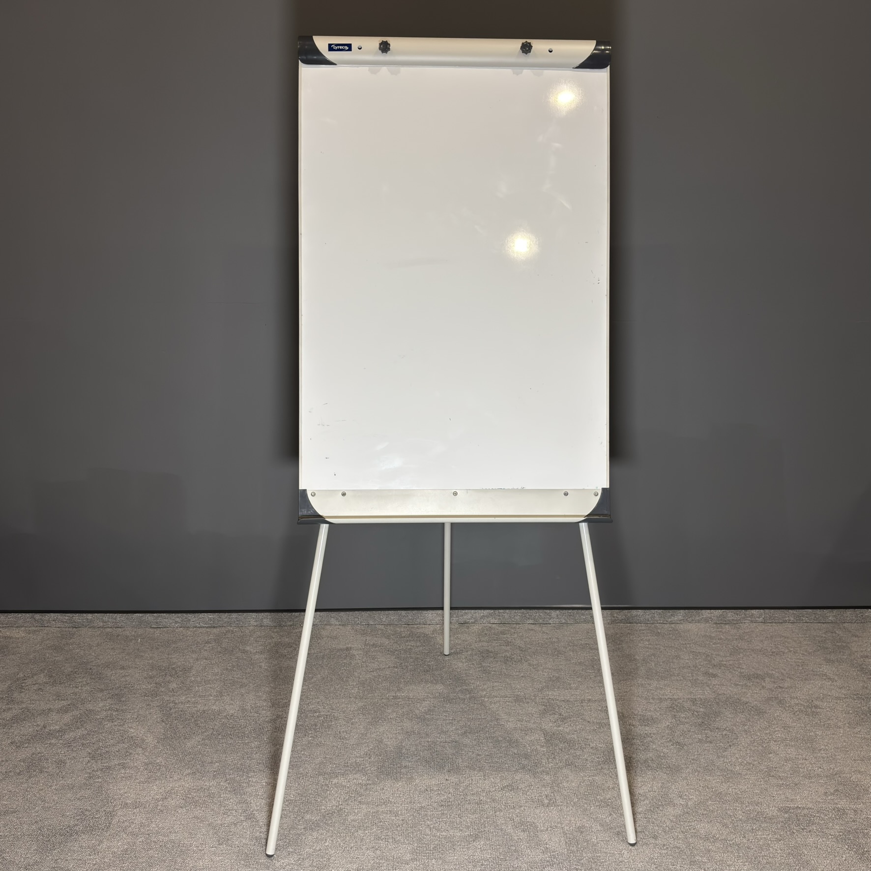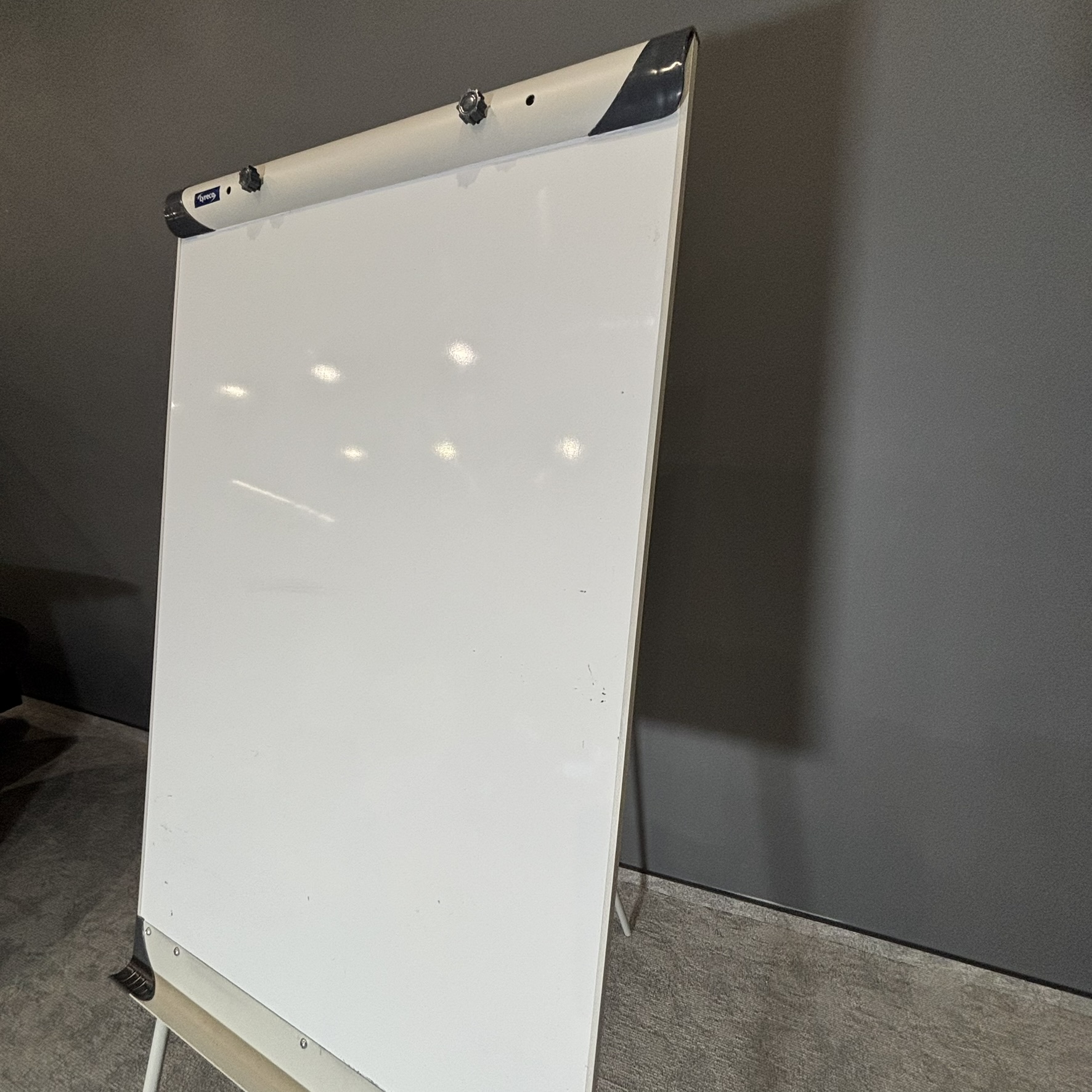 Flipchart w stanie używanym – w pełni funkcjonalny, z normalnymi śladami użytkowania. Powierzchnia robocza gotowa do dalszego użytkowania.