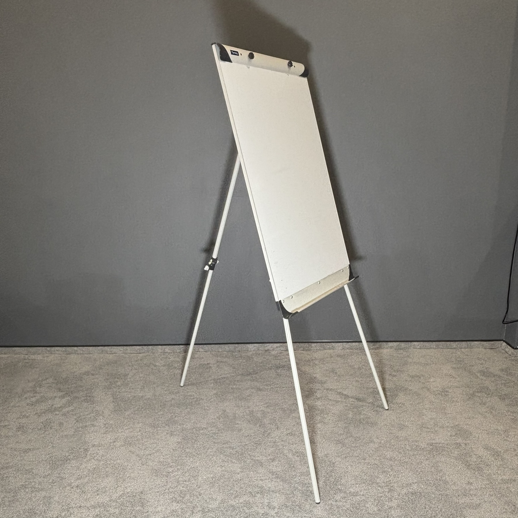 Flipchart 70x100 cm na trójnogu, wysokość 1704 mm. Wyposażony w uchwyt na papier i półkę na akcesoria. Lekki, stabilny i funkcjonalny. Stan używany, w pełni sprawny. Idealny do biura, szkoleń i prezentacji. Zapraszam do kontaktu.