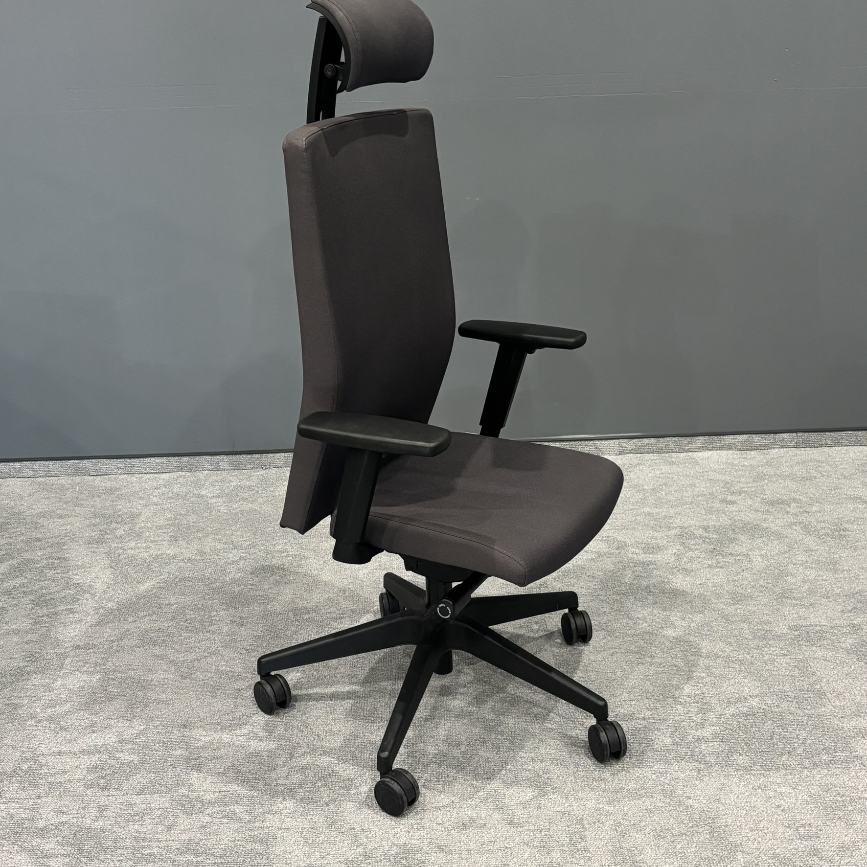 Fotel biurowy Profim Playa 12SL w kolorze antracytowym. Ergonomiczny model z wysokim oparciem i zagłówkiem, wyposażony w mechanizm synchroniczny oraz wysuw siedziska. Regulowane podłokietniki (góra–dół). Tapicerka poliester EVO Ev-1. Fotel używany, w dobrym stanie technicznym i wizualnym, w pełni sprawny. Idealny do biura lub home office. Zapraszam do kontaktu.