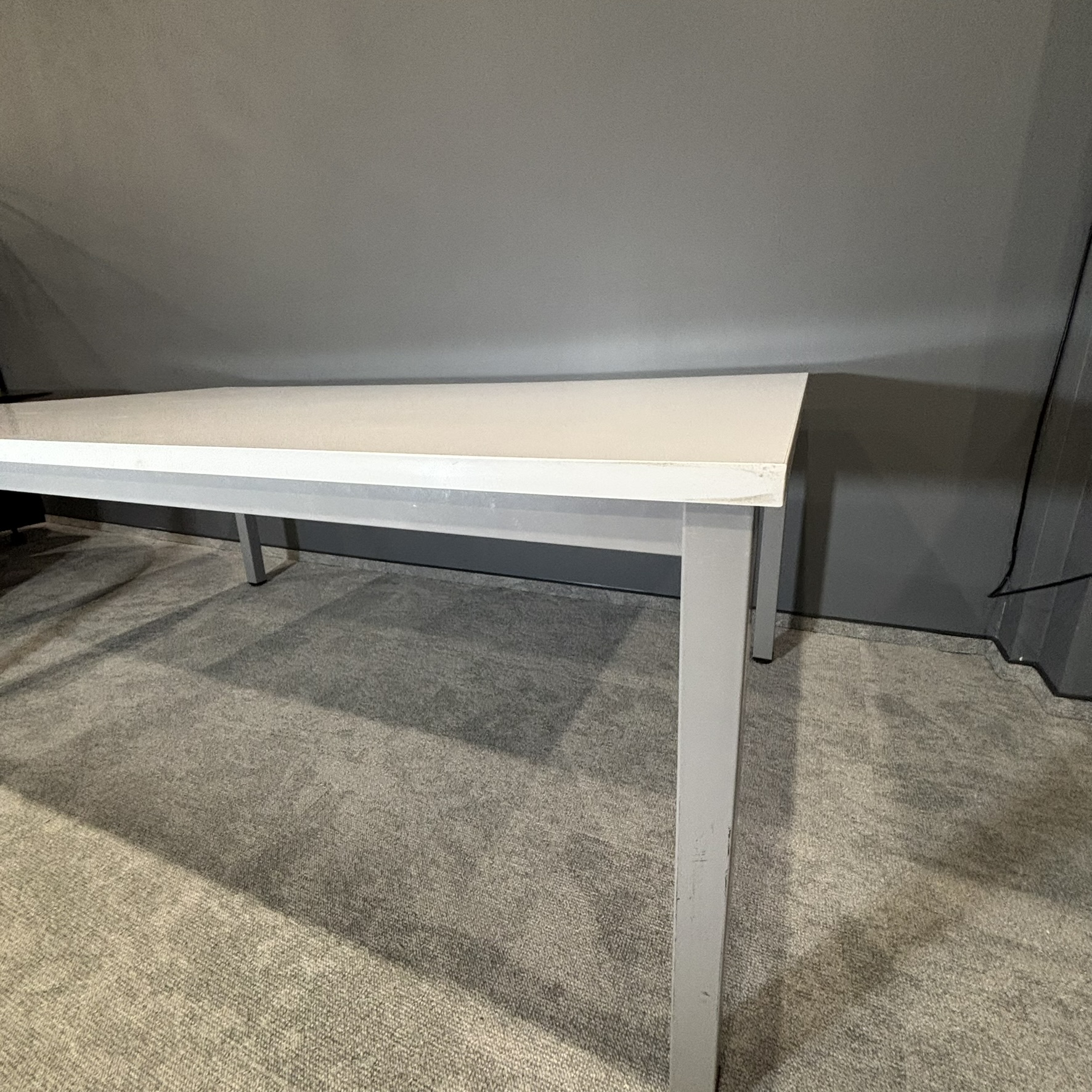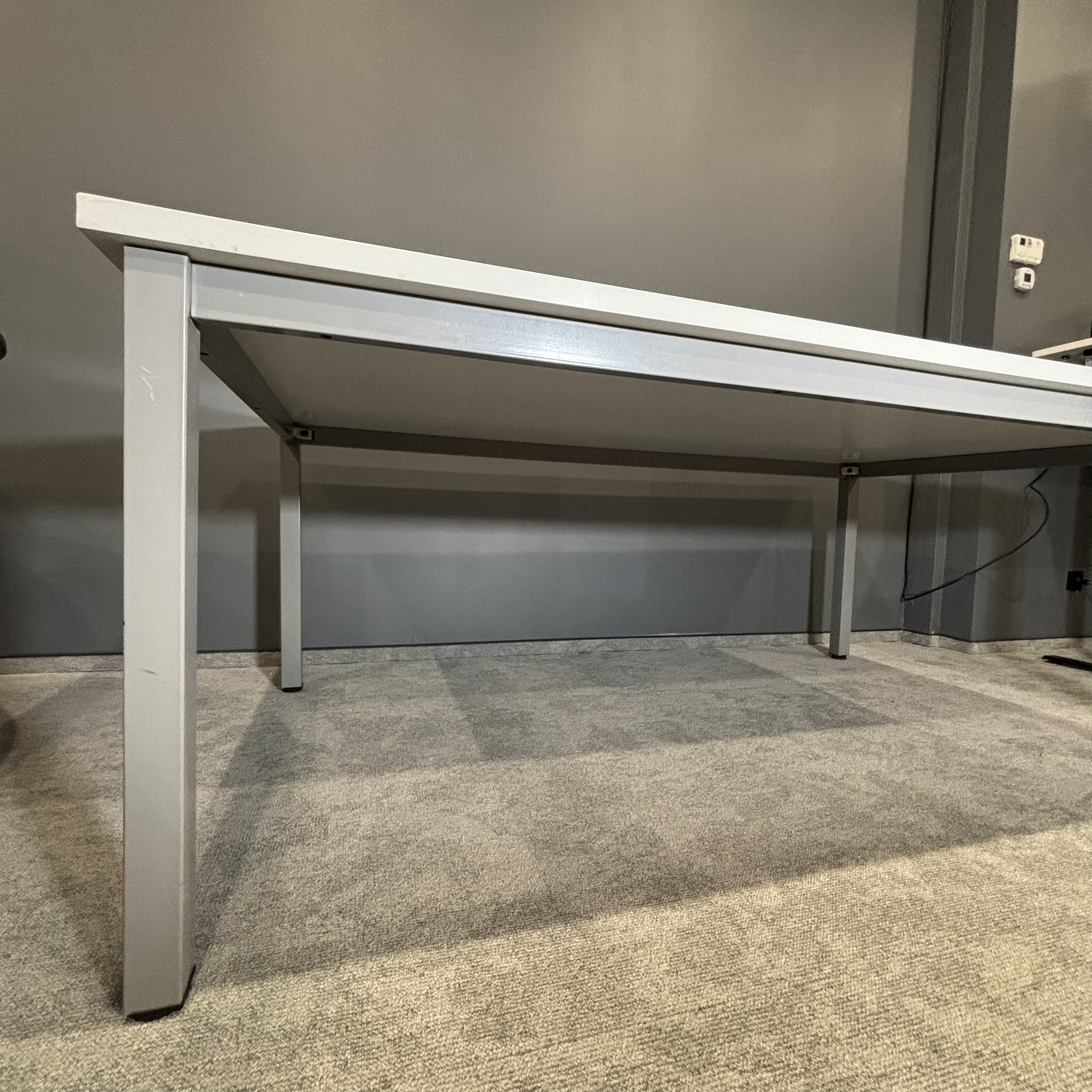 Stół konferencyjny MARO K-eM 200x120 cm, blat biały, stelaż aluminiowy. Duży, stabilny i funkcjonalny. Stan używany, w pełni sprawny. Idealny do biura, sali konferencyjnej lub pracy zespołowej. Zapraszam do kontaktu.